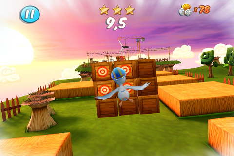 加上新手指引,游戏共计有9张地图(8张正式),选择算是比较丰富,不过里头都清一色的拿金蛋、攒金币、竞速、撞箱子和撞门5种主题,即便换张地图换个背景,没有急转弯没有快速穿梭的纯飞行收集玩法,确实感觉乏味了些,如果能在当前基础上,增加些许强调技巧的要素,相信可玩性会有相当高的提升。综合而言,外表尚算精致,玩法偏简单化的Crash Birds Islands《飞鸟历险记》玩玩几分钟不会有太大问题,适合喜欢简单游戏的玩家。