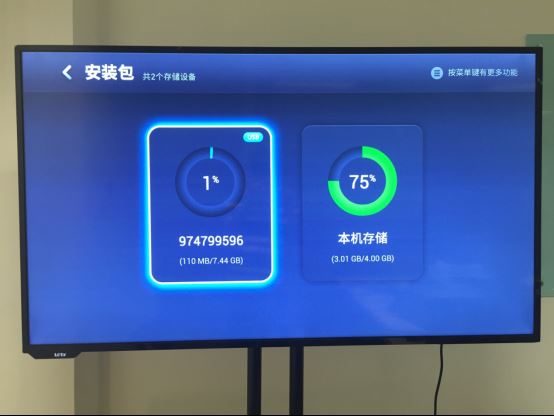 1、在泰捷官网下载最新的“泰捷视频”的安装包,拷贝到U盘,然后再把U盘插进乐视电视后面的USB插口。系统这时候会弹出提示框,显示检测到外接设备,点击“查看”后,选择“安装包”,在安装包界面点击U盘图标。